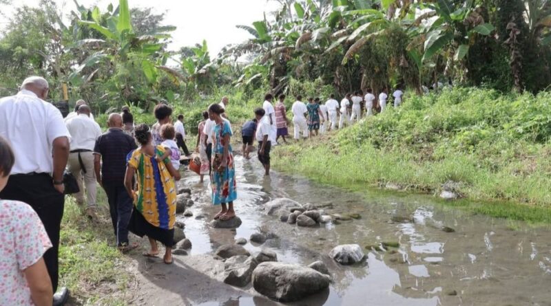 Na tarde de sábado, foi realizado um serviço batismal nos arredores de Popondetta, onde corre o rio Bangolo — um curso d’água tropical cercado por vegetação densa e natureza intocada.